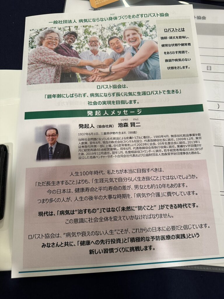 協会名にもある「ロバスト」という言葉には、「堅牢な」「強靭な」「揺るがない」といった意味があります。 単に病気ではない状態を目指すだけでなく、環境の変化やストレスにも負けない、真に「強い身体」をつくること。それがこれからの時代に求められる健康観であると、今回の勉強会を通じて改めて実感しました。